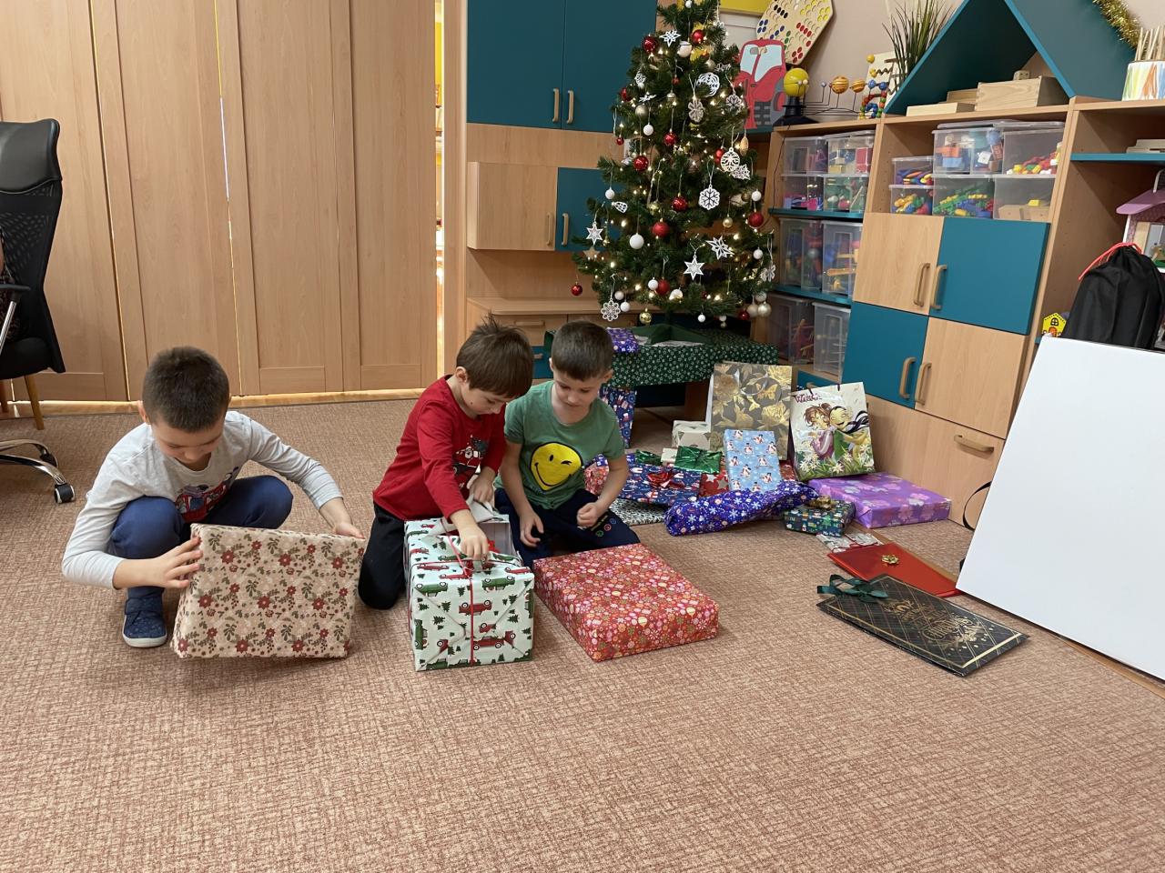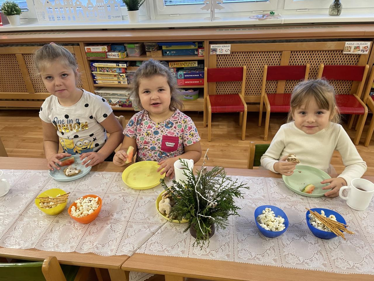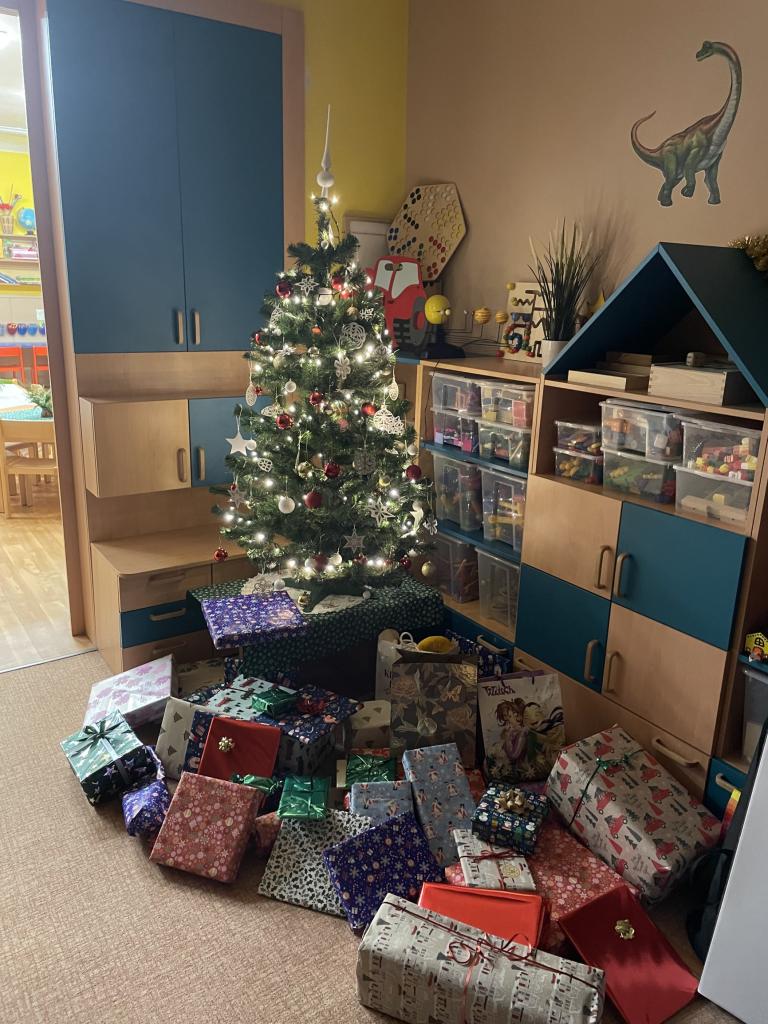 18. 12. přiletěl do školky Ježíšek a přinesl dětem spoustu krásných dárků za pečlivé splnění úkolů z adventního kalendáře. Pro děti byla připravena slavnostní tabule, měly možnost se seznámit s tradicemi - pouštění lodiček, rozkrajování jablíčka, házení střevícem...atd. Děkujeme Ježíškovi.