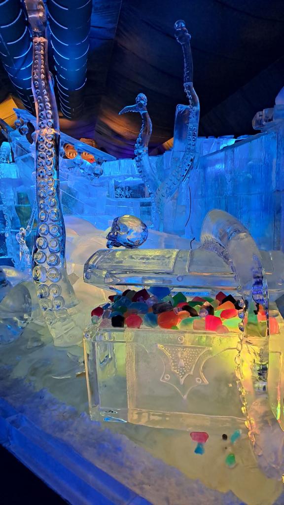 Park na rozloze 2 000 m2 nabízí největší ledovou výstavu, kterou vytvořilo 33 uměleckých řezbářů z celé Evropy.